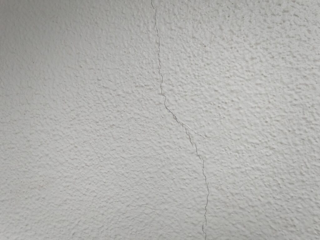 ひび割れ状態 3mmほどのモルタル外壁にひび割れがあります。