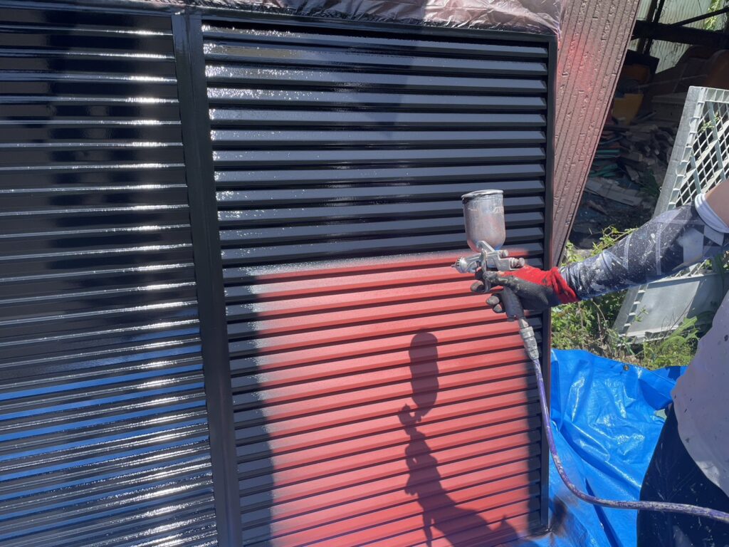 雨戸もフッ素樹脂塗料使用。ムラなく中塗りを塗装してます! -