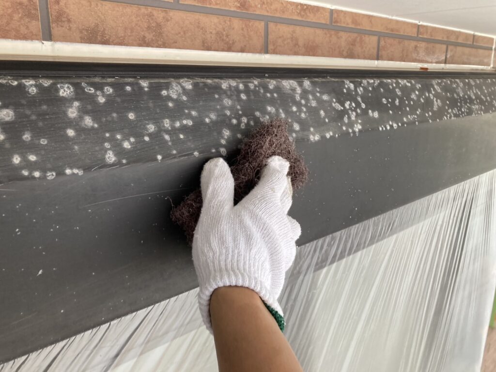 シャッターBOXは金属製のため、塗装前にサビ落とし・目荒らし(ケレン)を行いました。しっかりと下地を整えることで、塗料の密着性が高まり、長持ちする美しい仕上がりにつながります✨ -