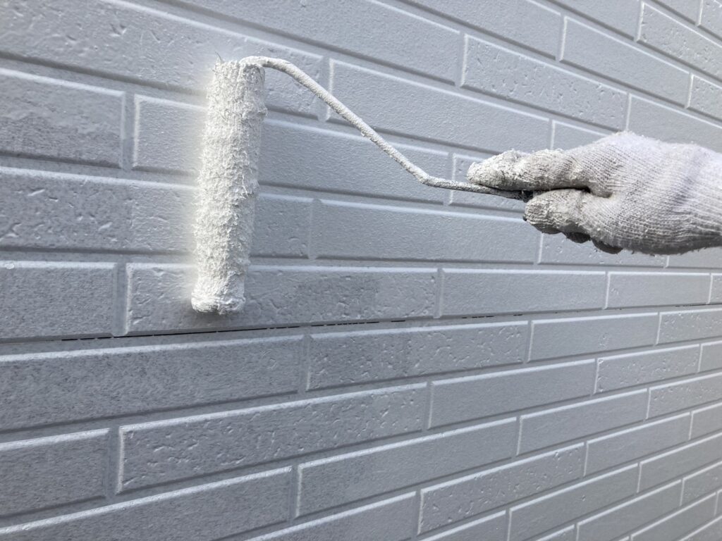 難付着サイディングに対応した専用の下塗り材を塗布しました。一般的な下塗り材では密着不良を起こしやすいため、適切な材料選定と丁寧な施工で塗膜の密着性を高めています。これにより、中塗り・上塗りが安定し、長期にわたり美観と耐久性を維持できます。
