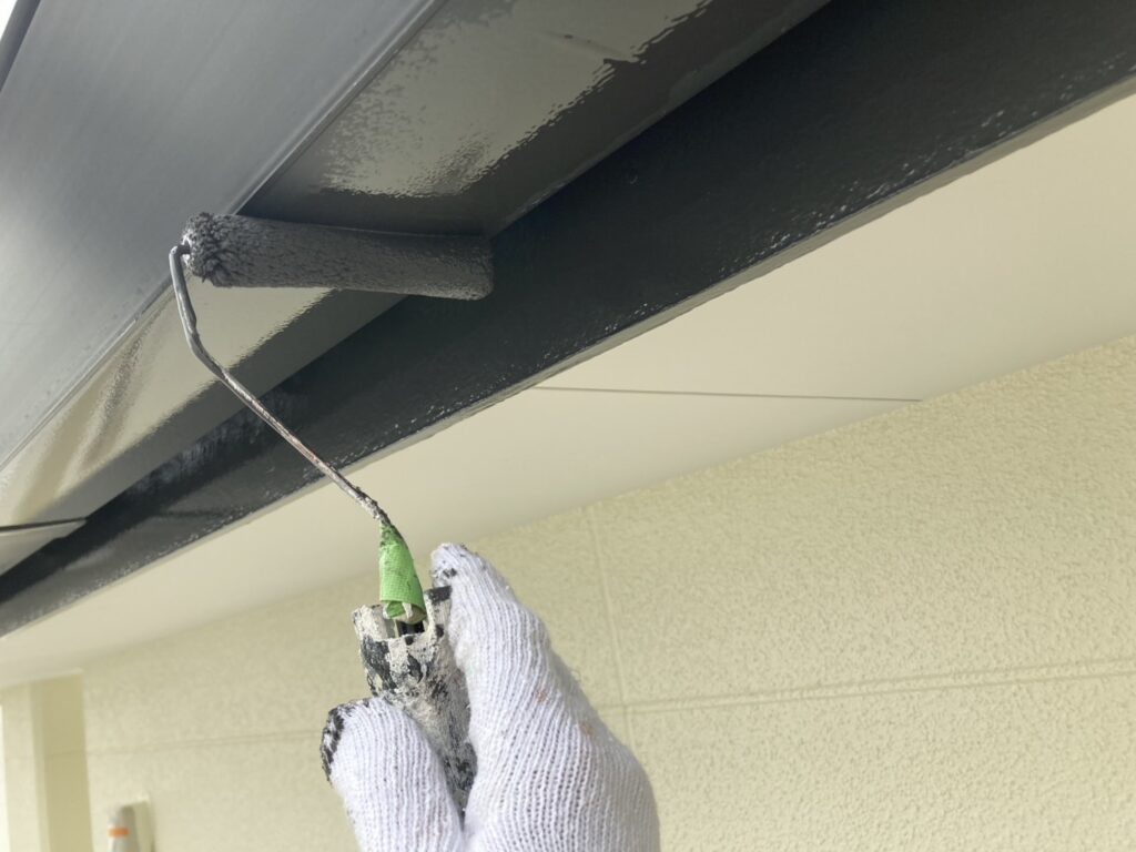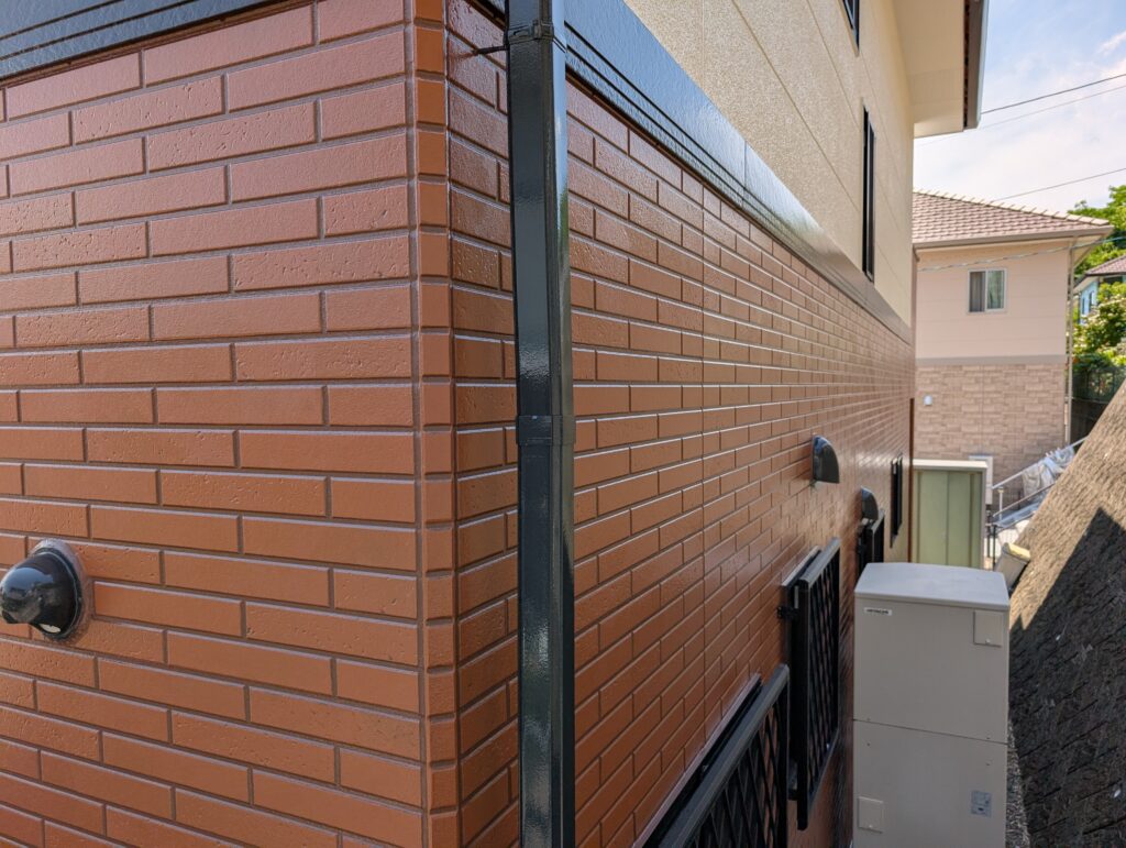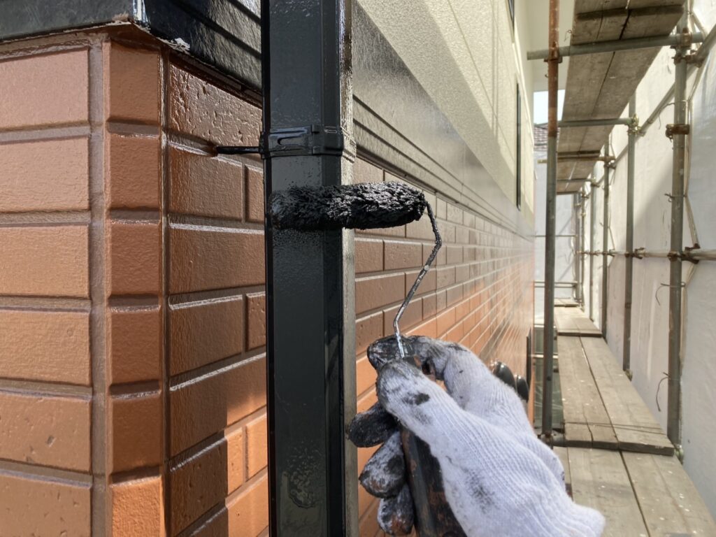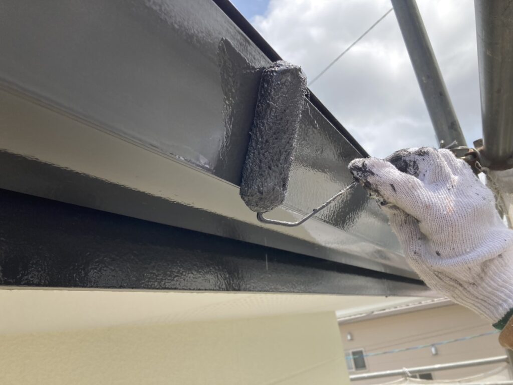 雨樋の塗装を行いました。紫外線や風雨で劣化しやすい部分ですが、専用塗料で仕上げることで耐久性を高め、美観も回復 -