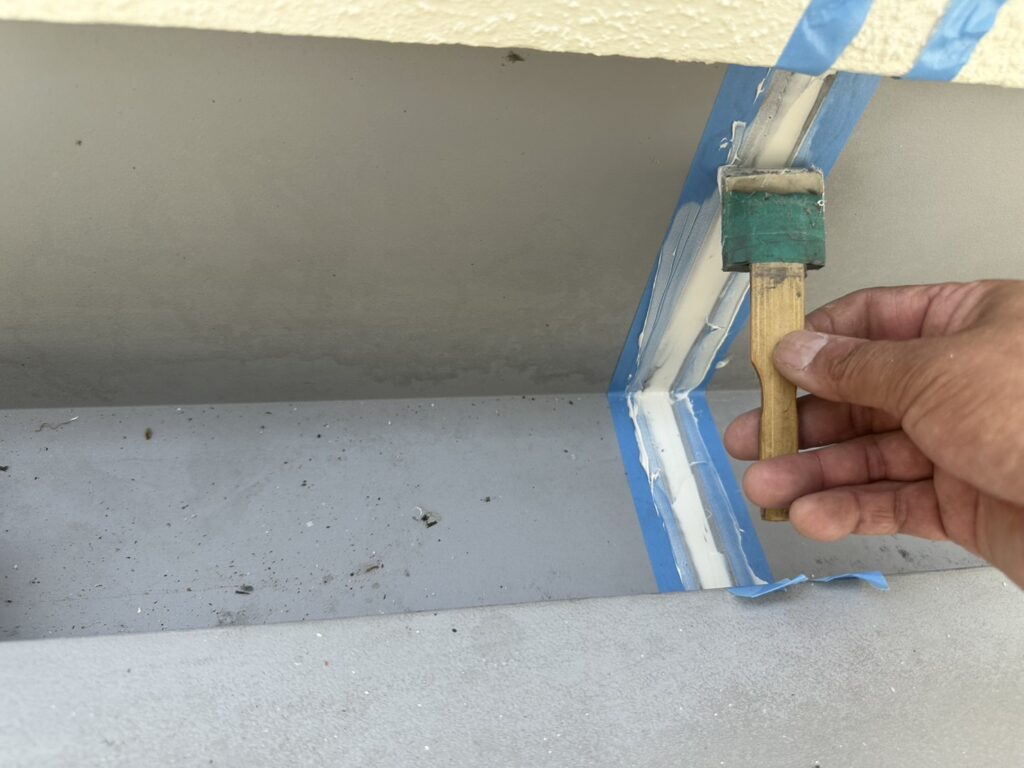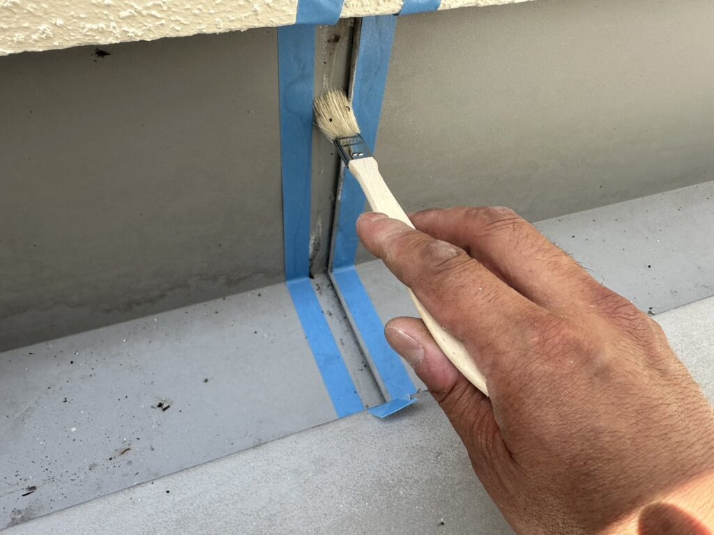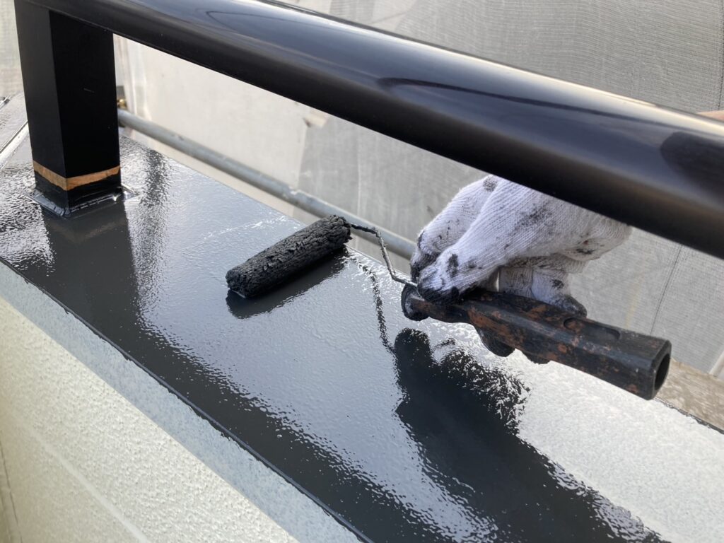 笠木は常に雨や紫外線にさらされるため、塗装で防水・防錆のバリアをつくる必要があります。、錆止め→中塗り→上塗りの3工程
