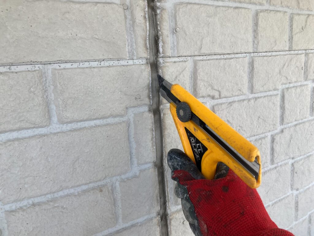 新しく打ち替えるため、傷んだコーキングをきれいに撤去 -