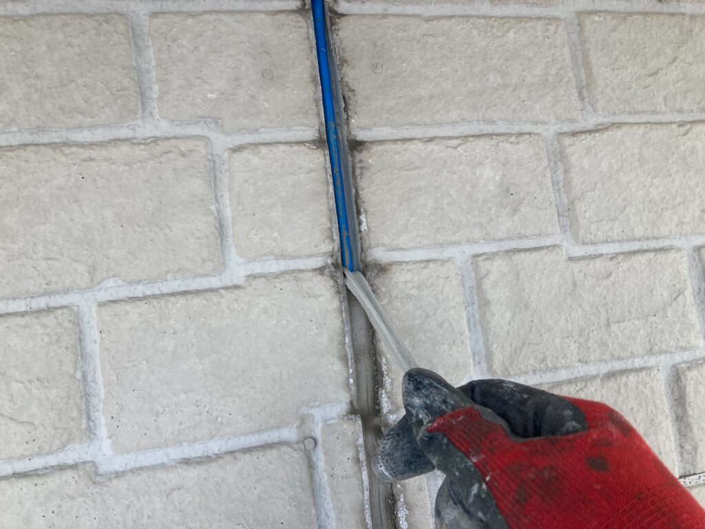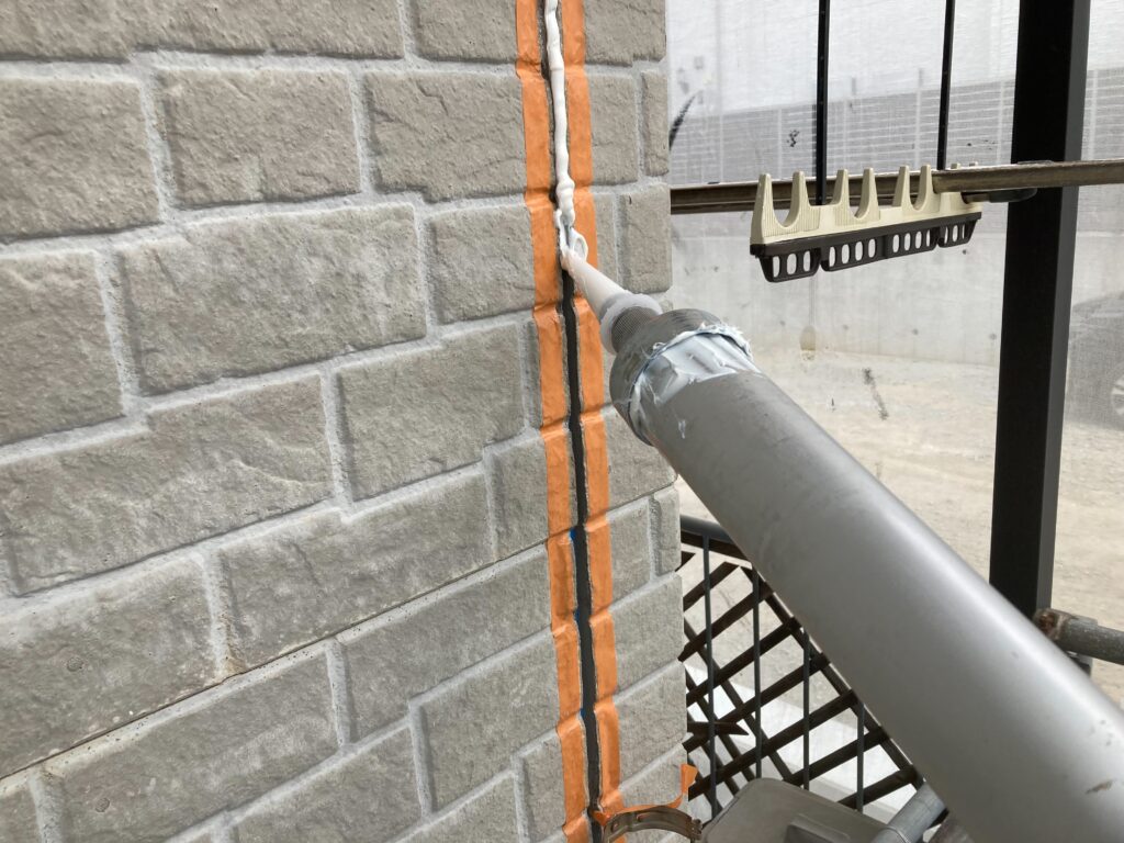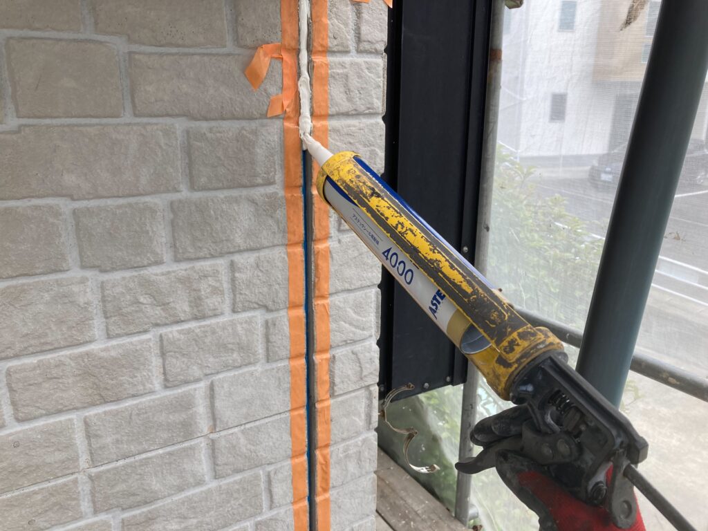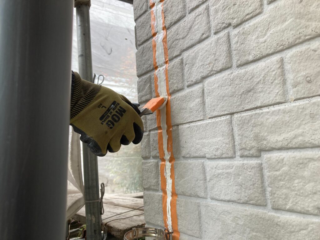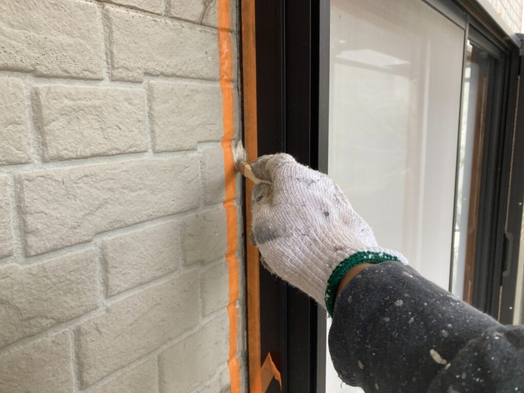 隙間が残らないよう注意しながら、コーキング材を丁寧に充填しております -