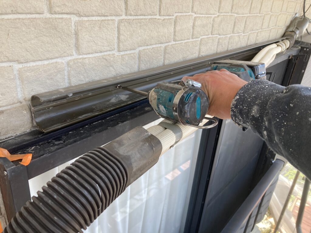 後から見えない場所まで塗装するため、ダクトを脱着して作業しています -