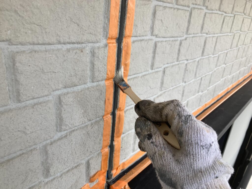 新しいコーキングがしっかり密着するよう、丁寧にプライマーを塗布 -