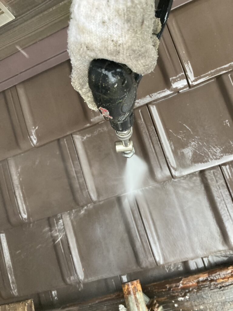 塗装は行わない陶器瓦ですが、コケや汚れを除去するため洗浄のみ実施します。