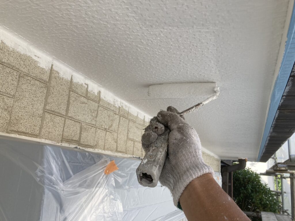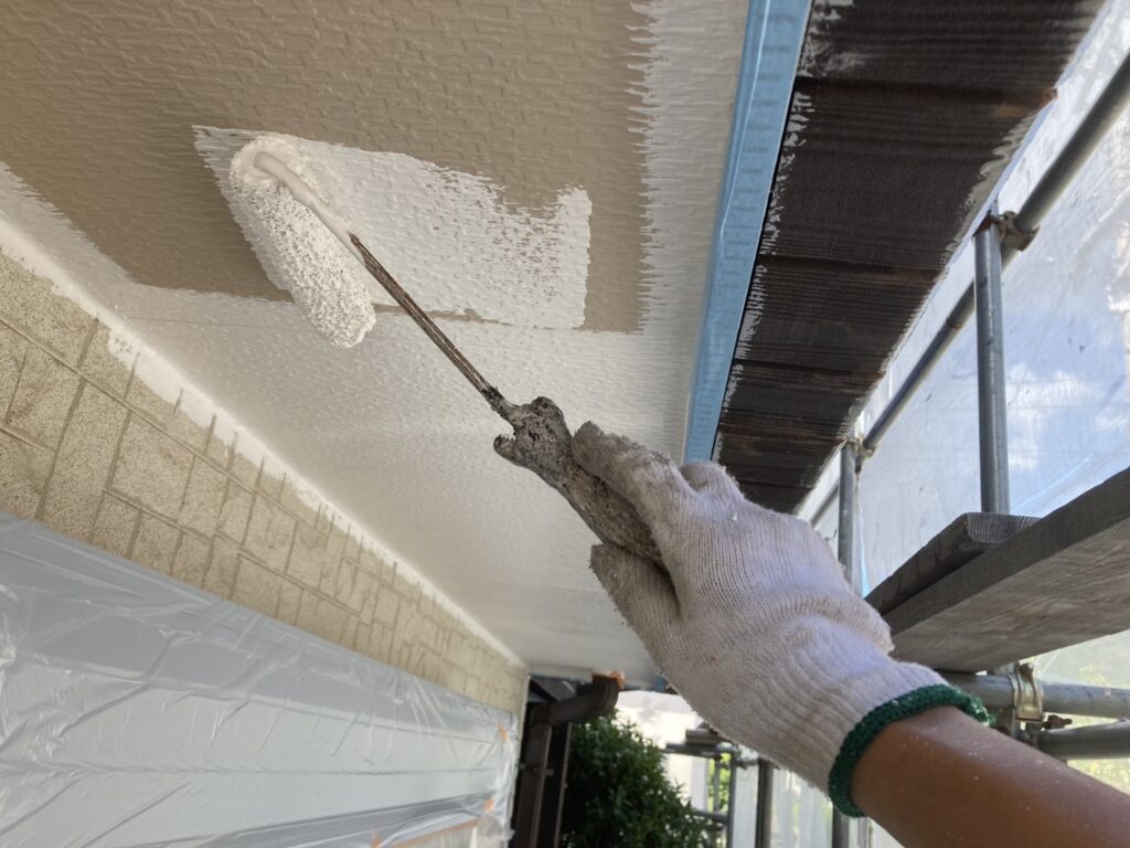 湿気がこもりやすい軒天を、防カビ性のある塗料で丁寧に塗装します。