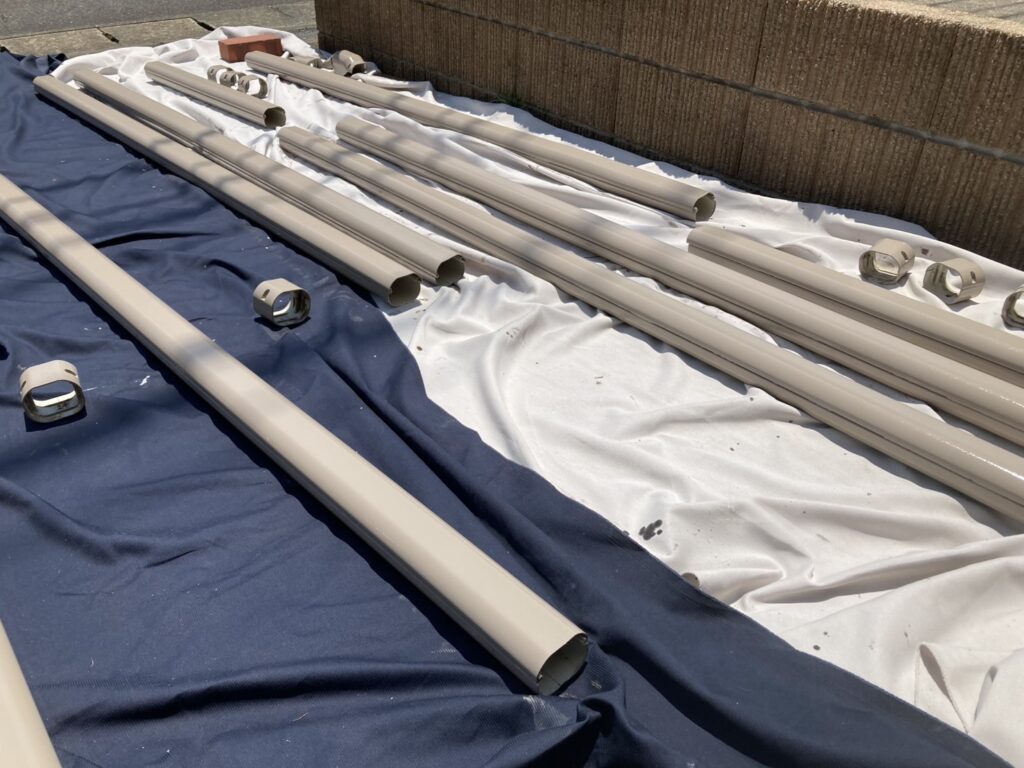 雨水を流す竪樋を、外壁に合わせてきれいに塗装し、外観を整えます。