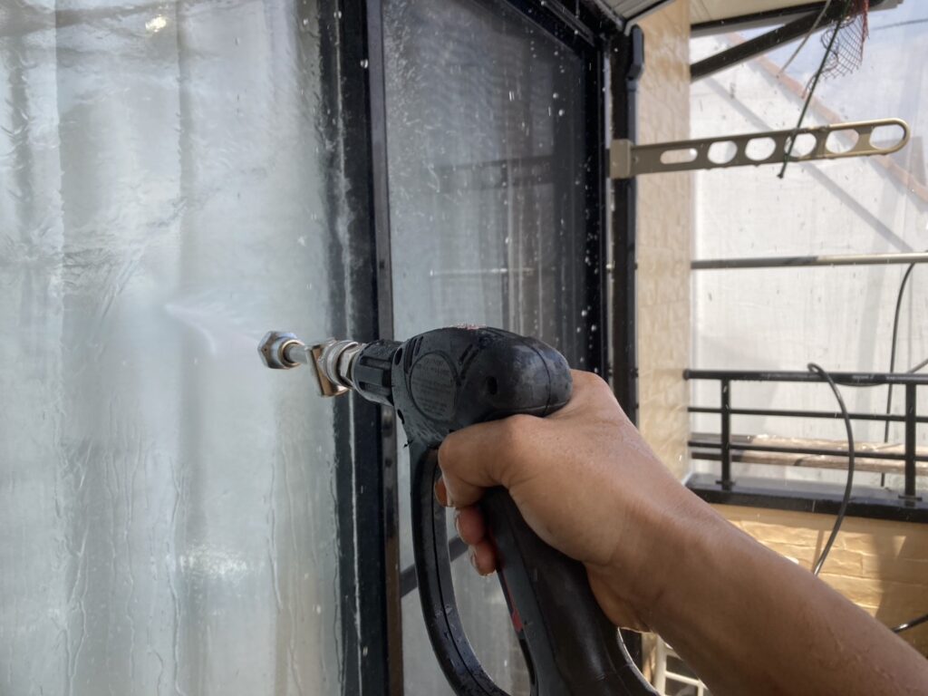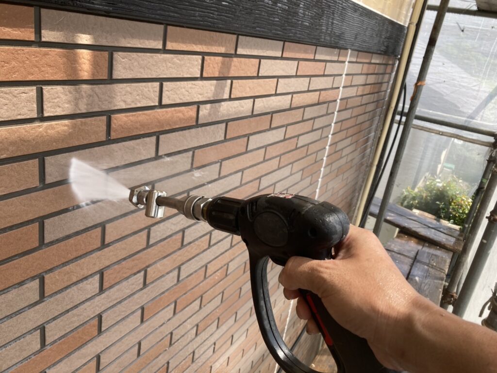 すき間にたまった汚れも、外壁を傷めないよう慎重に洗います。