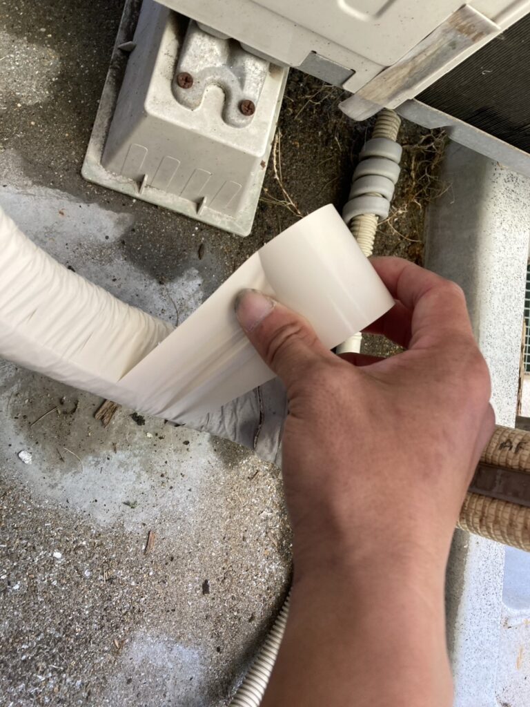 エアコンホース巻き直しや清掃などの無料サービス工事も行いました。